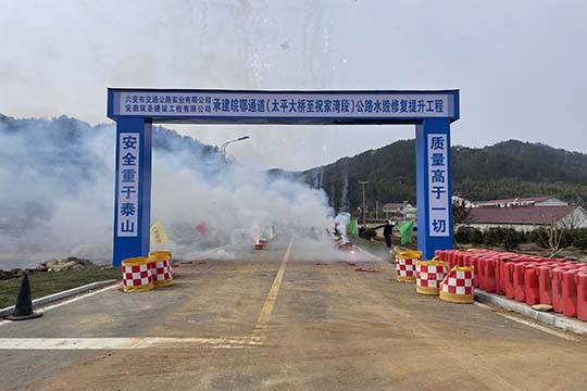 2月22日公司中標(biāo)承建的皖鄂通道(太平大橋至祝家灣段)公路水毀修復(fù)提升工程項(xiàng)目開工,太平畈鄉(xiāng)鄉(xiāng)長(zhǎng)汪俏、人大主席吳園忠參加開工典禮。
