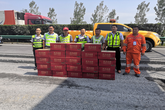 8月13日上午,合肥繞城高速北環(huán)管理處副總經理李端良、養(yǎng)管中心合肥分中心主任張立之、副主任涂勇一行到我公司承建的2019-2021年度安徽省部分高速公路路面修復養(yǎng)護工程合肥北環(huán)高速施工現(xiàn)場進行慰問,為奮戰(zhàn)在烈日一線的人員送來陣陣清涼。