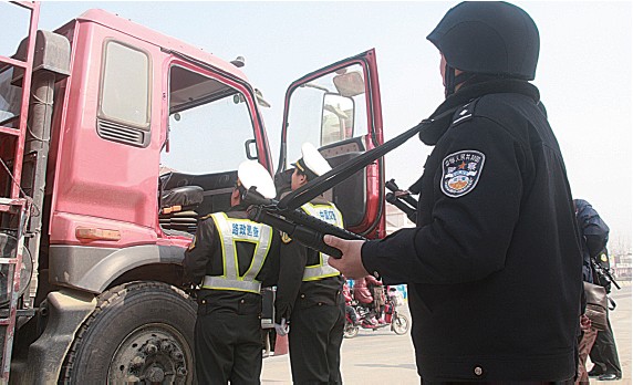 公路治超一直具有“硬碰硬”性質(zhì),六安市為配合312國道治超,出動(dòng)防暴隊(duì)員,攜帶防暴槍械配合公路、運(yùn)管等部門聯(lián)合治超。記者1月4日上午趕赴現(xiàn)場,目睹在我省尚屬首次的防暴隊(duì)帶槍護(hù)衛(wèi)治超行動(dòng)。