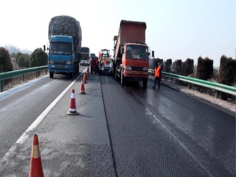 此次搶修養(yǎng)護,我公司從14日接到通知后,迅速組織人員到位、設備裝車及安全設施進行檢查、裝車待命,15日在確認無大霧、霜凍的情況下,由交警、路政大隊和高速公路六安管理公司安委會的指導下對火燒路段進行封閉,施工長度70米,由于施工路段處于下坡段,安全封閉長度2100米。當天完成下行線火燒段左半幅全部施工,并將所有機械設備和安全設施撤除。16日進行下行線火燒段右半幅封閉施工,并于16:00實現(xiàn)全線通車。