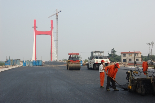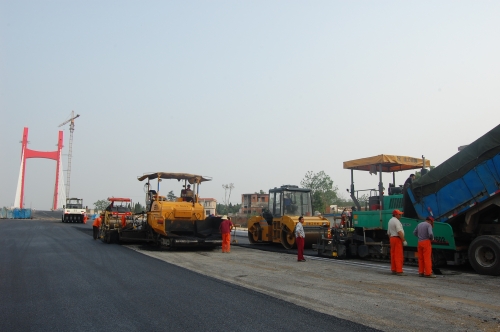 公司參加市政重點(diǎn)工程淠望路大橋橋面瀝青混凝土工程